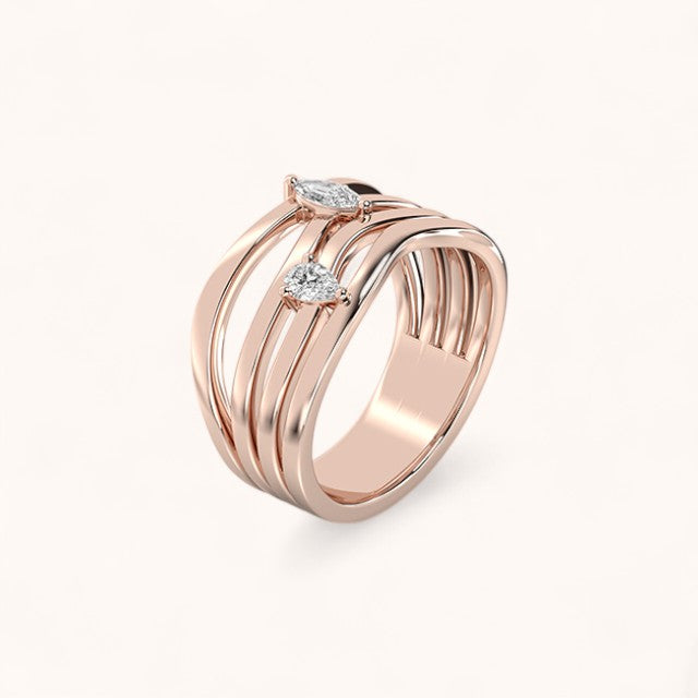 Available in Yellow, Rose, and White Gold, this ring is the perfect blend of modern design and timeless diamond brilliance.