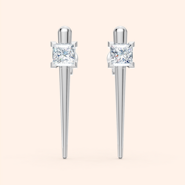 The Auric Earrings by ZAUV are designed for the bold and fashion-forward. Crafted in 9K/14K certified yellow gold, these earrings feature a striking princess-cut moissanite set atop sleek gold spikes, embodying a perfect blend of power and elegance. Their modern geometric silhouette makes them ideal for evening wear, cocktail parties, or high-fashion styling. Minimal yet impactful, these earrings are a must-have for women who love to make a statement with their jewelry.