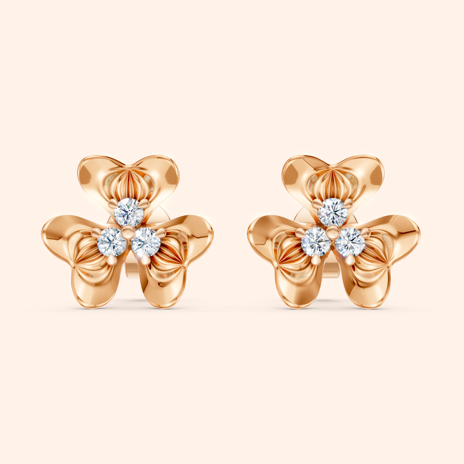 Add timeless charm to your jewelry collection with ZAUV’sGloria Earrings. Crafted in premium yellow gold, these earrings feature a delicate floral design with three sparkling brilliant cut diamonds at the center. The petal-like structure reflects elegance, while the diamonds add a luxurious sparkle. Perfect for everyday wear, office outfits, festive occasions, or as a thoughtful gift, these stud earrings bring a touch of nature-inspired beauty to your style. A versatile pair that blends modern simplicity with classic sophistication