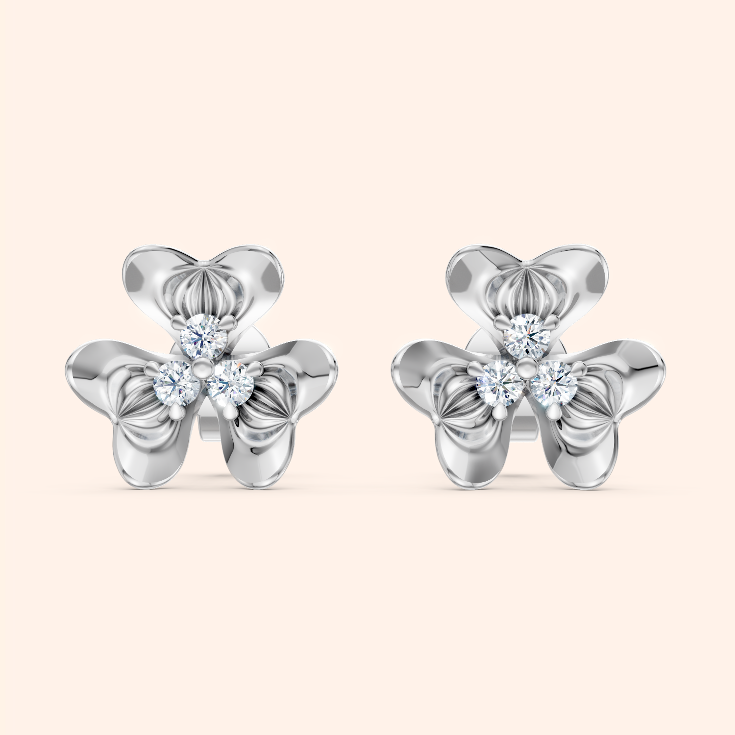 Add timeless charm to your jewelry collection with ZAUV’sGloria Earrings. Crafted in premium yellow gold, these earrings feature a delicate floral design with three sparkling brilliant cut diamonds at the center. The petal-like structure reflects elegance, while the diamonds add a luxurious sparkle. Perfect for everyday wear, office outfits, festive occasions, or as a thoughtful gift, these stud earrings bring a touch of nature-inspired beauty to your style. A versatile pair that blends modern simplicity with classic sophistication