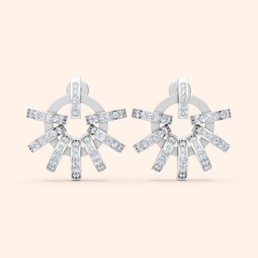 The Trilume Earrings are a radiant expression of modern luxury. Designed exclusively for women, these earrings feature a striking geometric cascade of seven diamond-studded bars radiating from a central golden circle, creating a bold yet elegant silhouette. With their luminous sparkle and contemporary artistry, the Trilume Earrings are an effortless blend of glamour and sophistication — perfect for both statement occasions and refined everyday styling.
