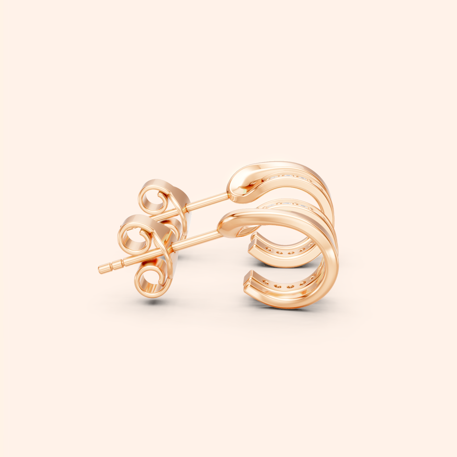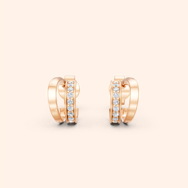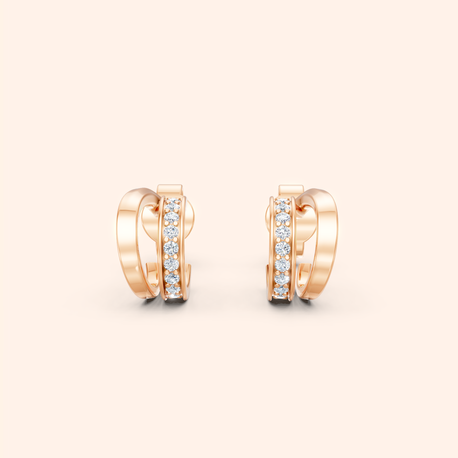Elevate your look with ZAUV’s Zyra Earrings, a contemporary masterpiece designed for the modern woman. Featuring a dual loop design in fine yellow gold, the earrings are adorned with a sleek row of sparkling round diamonds that add radiance from every angle. Their bold yet lightweight design makes them perfect for parties, weddings, or evening occasions, while the versatile styling ensures they pair beautifully with both traditional and western outfits. These earrings embody luxury, elegance, and modern artistry, making them a must-have for your fine jewelry collection.
