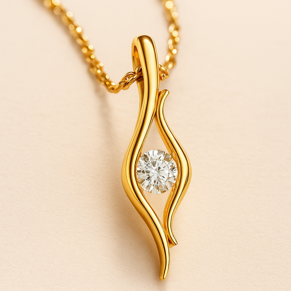 Inspired by the calm of the ocean, the ZAUV Nazare Pendant embodies purity and poise. Set with a certified real diamond and crafted in 9K or 14K gold, it’s a masterpiece of modern craftsmanship and affordable luxury jewellery.