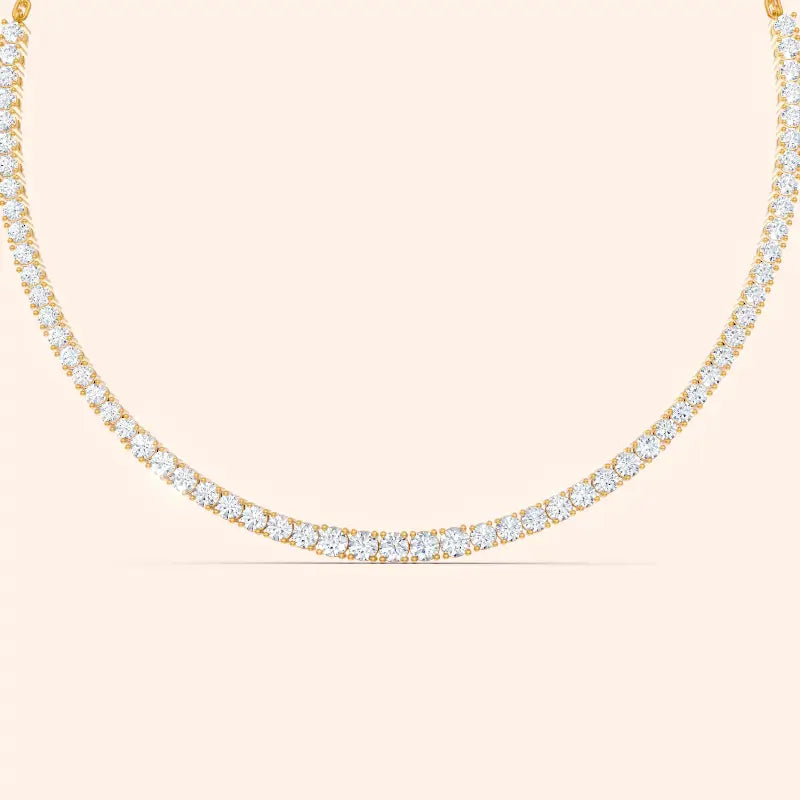 The ZAUV Tennis Éclat Necklace is a timeless classic, redefining sophistication. Adorned with moissanite set in 9K and 14K BIS Hallmarked real gold, it’s an essential luxury moissanite necklace for women that transitions seamlessly from day to night.