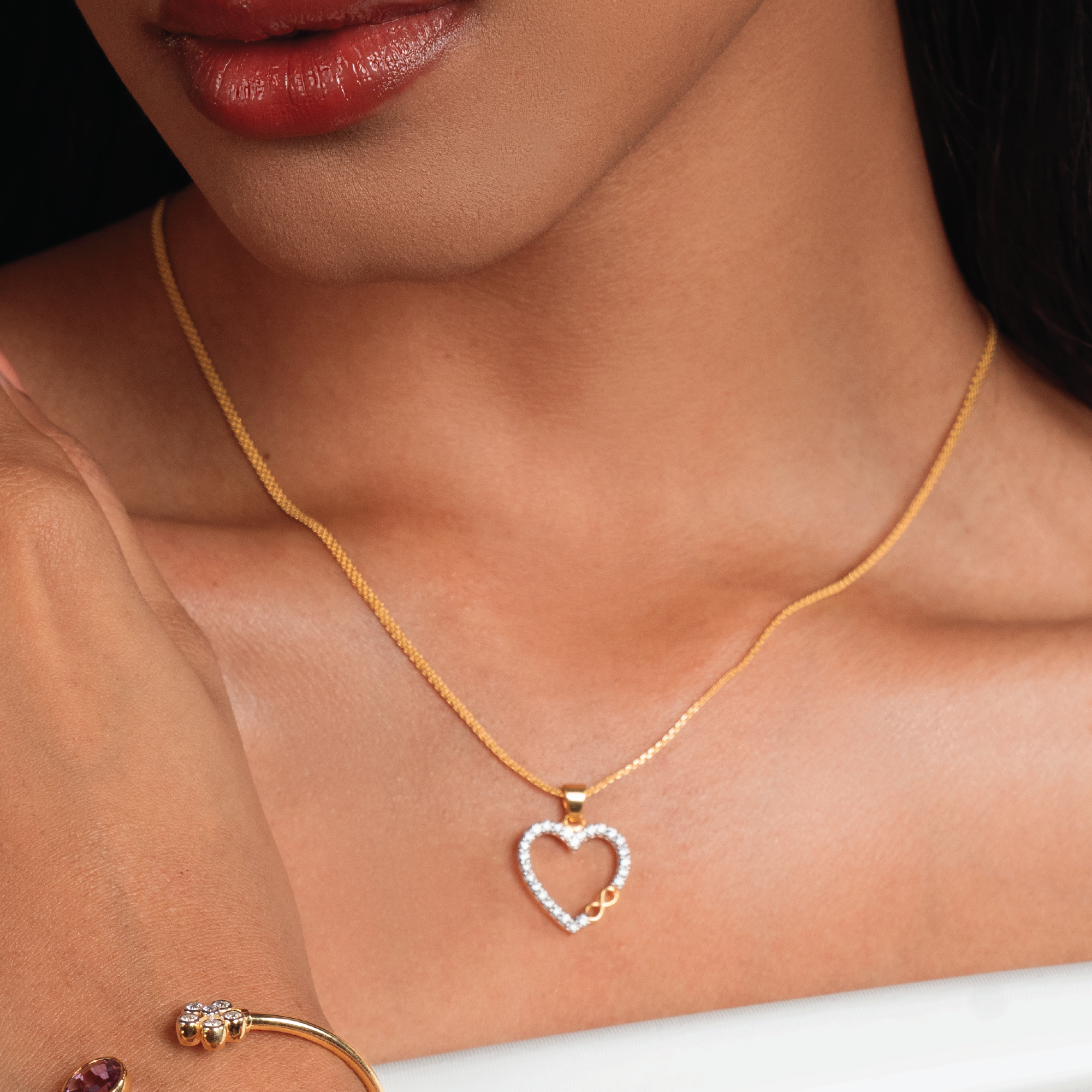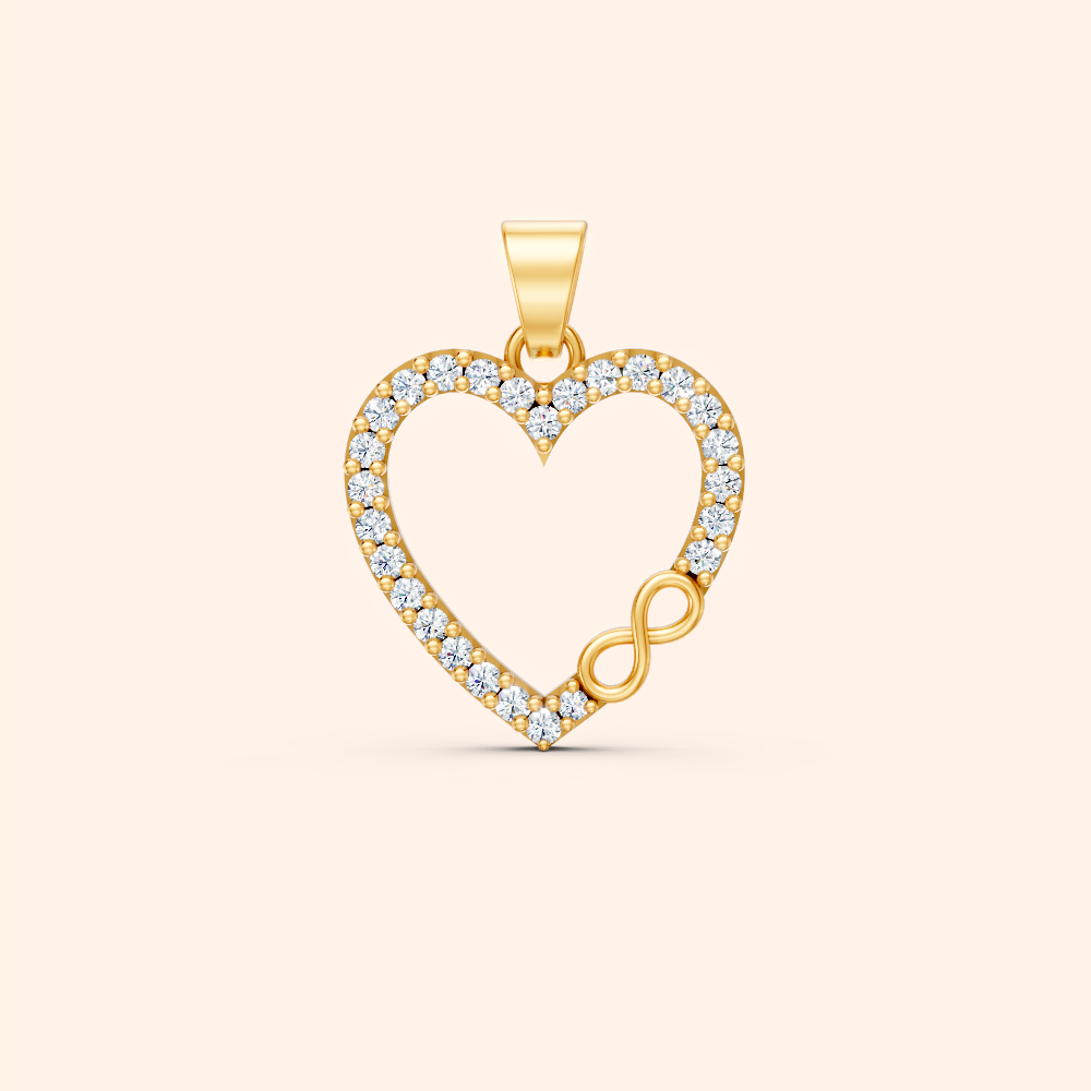 The Infinity Heart Pendant by ZAUV celebrates love, infinity, and everlasting elegance. Crafted in 9K and 14K real gold, it features certified real diamonds arranged in a delicate heart-shaped infinity motif. This real diamond pendant for women is perfect for expressing love — to yourself or someone special.